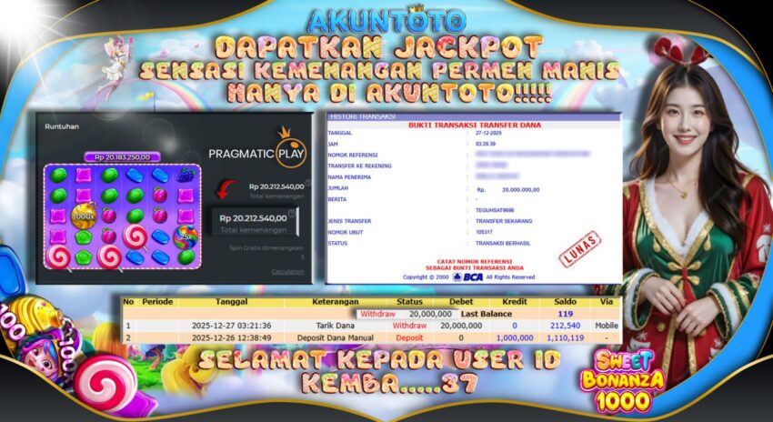 AKUNTOTO JACKPOTSweet Bonanza 1000 Rp20.000.000 SABTU 27 DESEMBER 2025