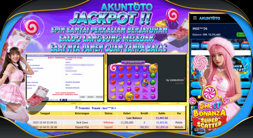 AKUNTOTO JACKPOT SLOT SWEET BONANZA SUPER SCETTER Rp 13.200.000 SABTU 04 OKTOBER 2025
