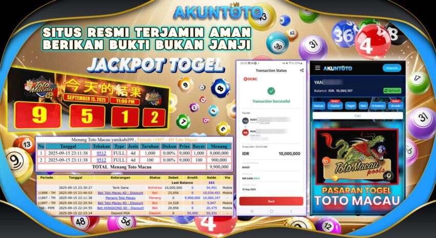 AKUNTOTO JACKPOT TOGEL TOTO MACAU Rp 10.000.000,- LUNAS